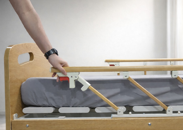 - ราวข้างเตียงแบบสไลด์ กันผู้ป่วยตกจากเตียง สามารถพับเก็บได้ ปรับขึ้น-ลงได้ด้วยมือเดียว